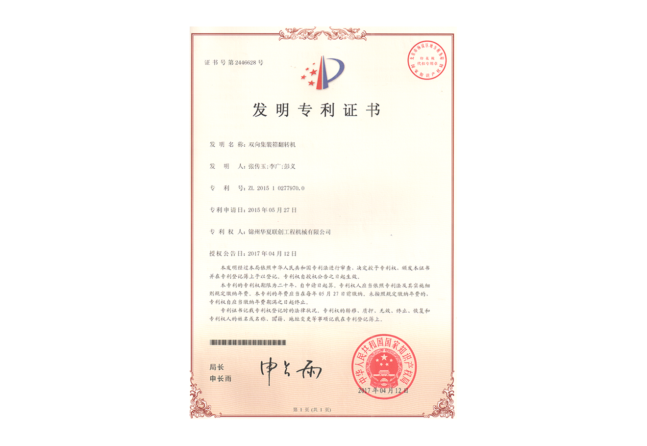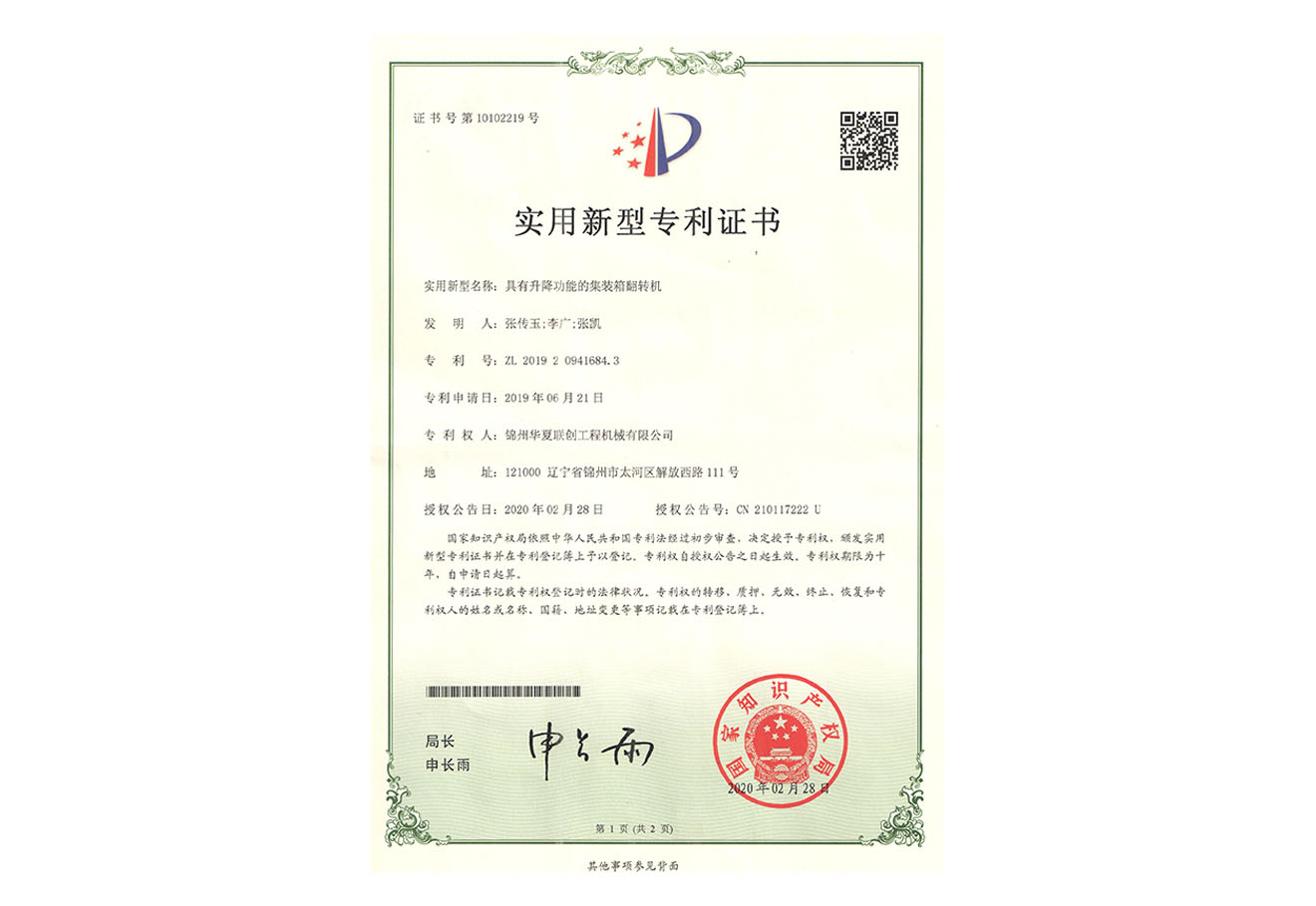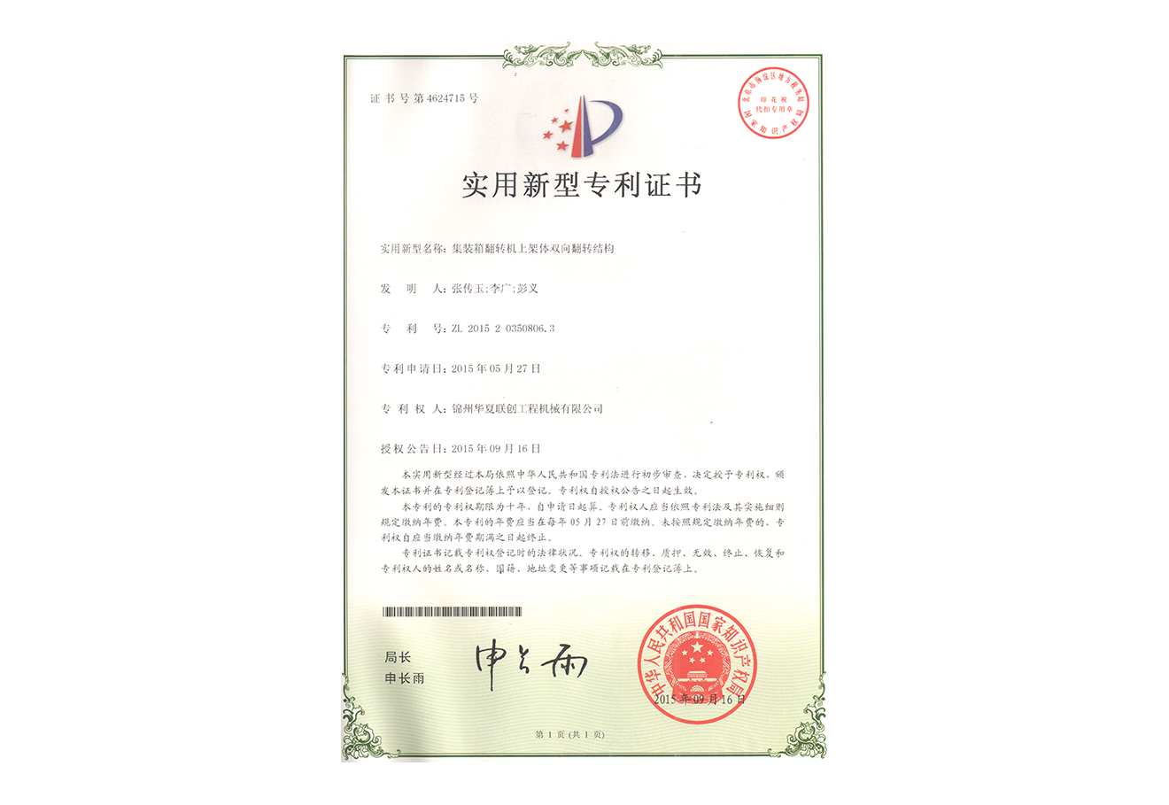 華夏聯(lián)創(chuàng)集團創(chuàng)始于2005年,憑借公司品牌優(yōu)勢、技術(shù)優(yōu)勢、人才優(yōu)勢、資金優(yōu)勢,以數(shù)十年磨一劍的博觀約取、厚積薄發(fā),自主研制生產(chǎn)具有先進水平的集裝箱翻轉(zhuǎn)機,翻轉(zhuǎn)平臺,智能化液壓翻板汽車裝卸。為用戶提供各種集裝箱裝卸設備、火車集裝箱、船舶裝卸機等自動裝卸設備。公司逐步形成了以工程機械為核心、擁有自主知識產(chǎn)權(quán)、在國內(nèi)具有一定影響力的企業(yè)。華夏聯(lián)創(chuàng)公司自成立以來,產(chǎn)品銷量持續(xù)高速增長,實現(xiàn)了跨越式發(fā)展,已經(jīng)成為行業(yè)知名品牌。